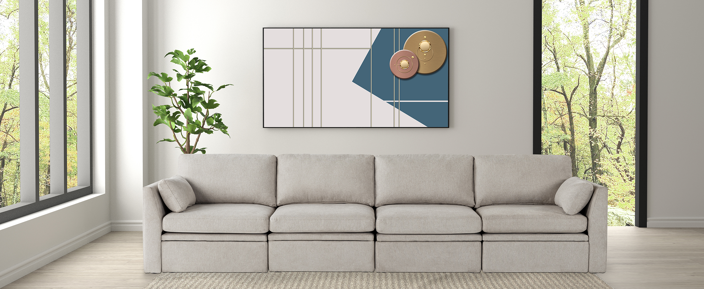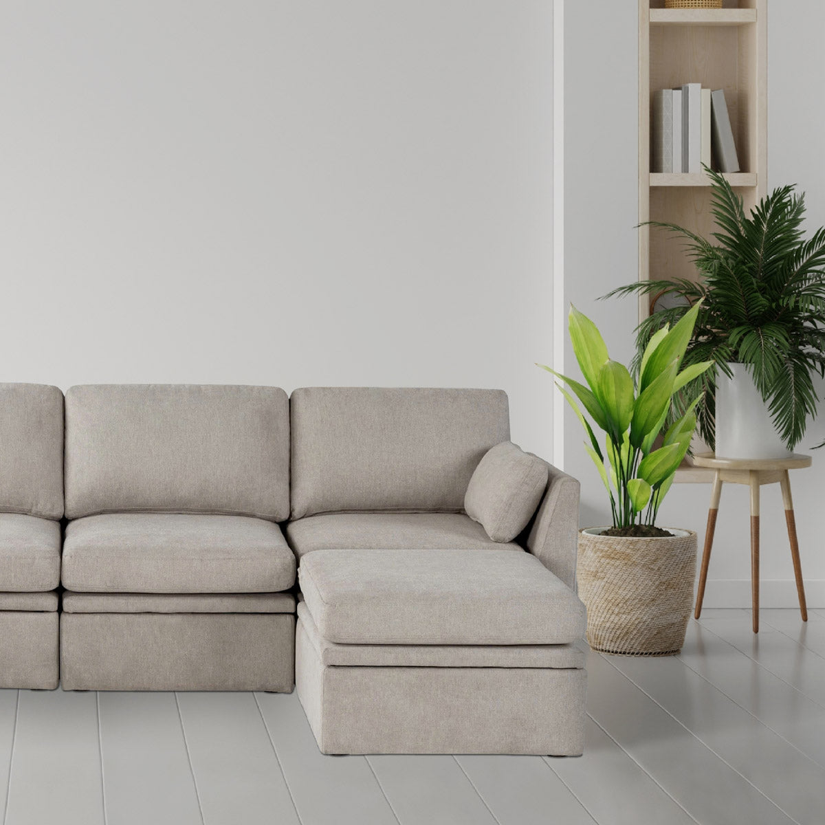 Oloa is bringing the same dedication to high quality and value to the living room with an all-new modular sofa sectional. Relaxed and spacious, our modular sofa brings to your living room the right amount of comfort at the right price. With classic design that compliments any décor, it boasts deep seating with plush cushions so you can lounge comfortably for hours. Dually functioning ottoman and chairs also act as storage bins, bringing more space to your living room. Modular chairs and ottoman makes it effortless to rearrange to host overnight guests, movie nights or gatherings big or small with friends and family. Right Comfort, Right Design and Right Price - discover Oloa's 3R sofa series and make the right choice for your home.