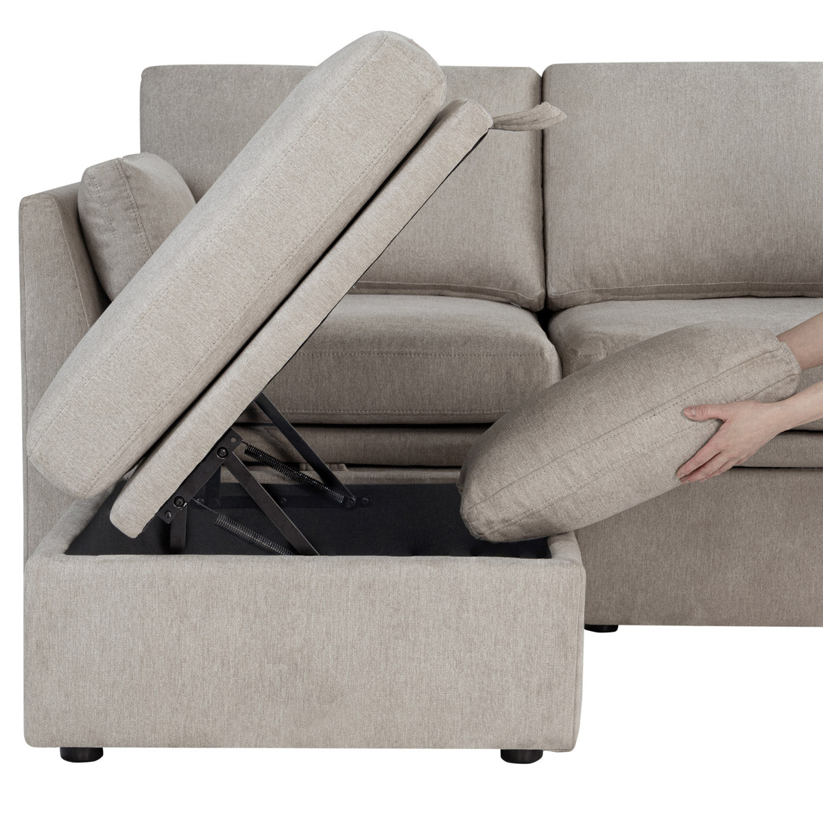 "Setting up the couch was extremely easy as the different sections can be rearranged and connected easily. The couch is very comfortable and as a 6ft man I can lay comfortably on it. The material is very soft and the couch is at a good height for both sitting on and laying. The couch has built-in storage that is very spacious and can store a lot of things. The materials and hinges feel very sturdy and built well, and the storage compartments open and close smoothly. Overall I am very happy with this couch. This couch is perfect if you need a sturdy couch that is comfortable to sit and lay on and has a lot of useful storage space."
